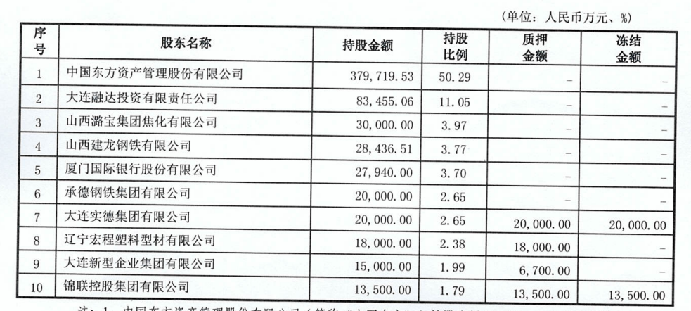 2015年,四大AMC公司之一的中国东方资产管理股份有限公司(下称“东方资产”)通过增资入股重组大连银行,后通过受让原股东股份,持股比例增至50.29%。
