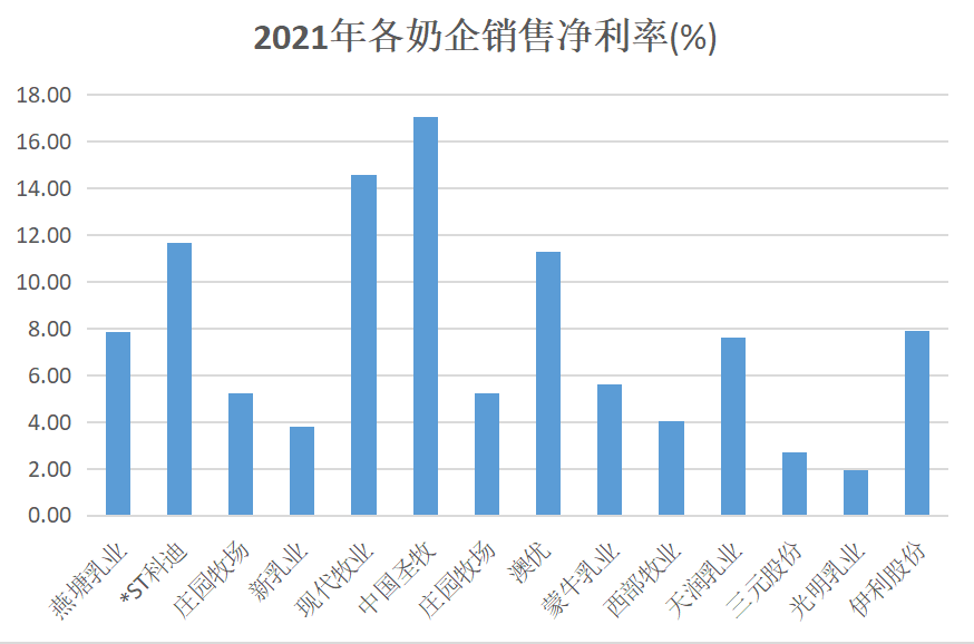 这种买买买的节奏给新乳业带来了非常直接的营收增长。《眼镜财经》注意到,2021年实现营收89.67亿元,同比增长32.87%,归母净利润达3.12亿元,同比增长15.23%。不过,其销售净利率仅为3.81%,已经连续4年下滑,且在诸多上市奶企中排名倒数第三。