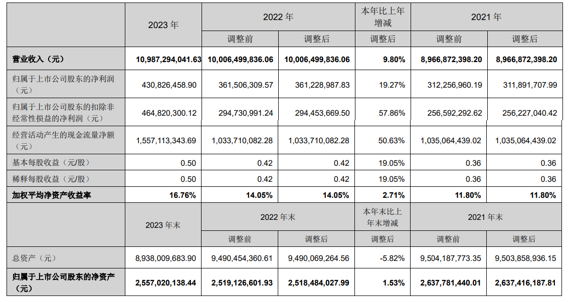 报告显示,公司全年实现营业收入109.87亿元,同比增长9.80%;归属于上市公司股东的净利润为4.31亿元,同比增长19.27%;归属于上市公司股东的扣除非经常性损益的净利润为4.65亿元,同比增长57.86%。