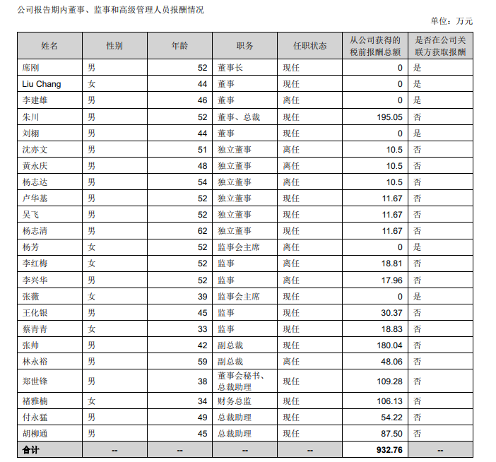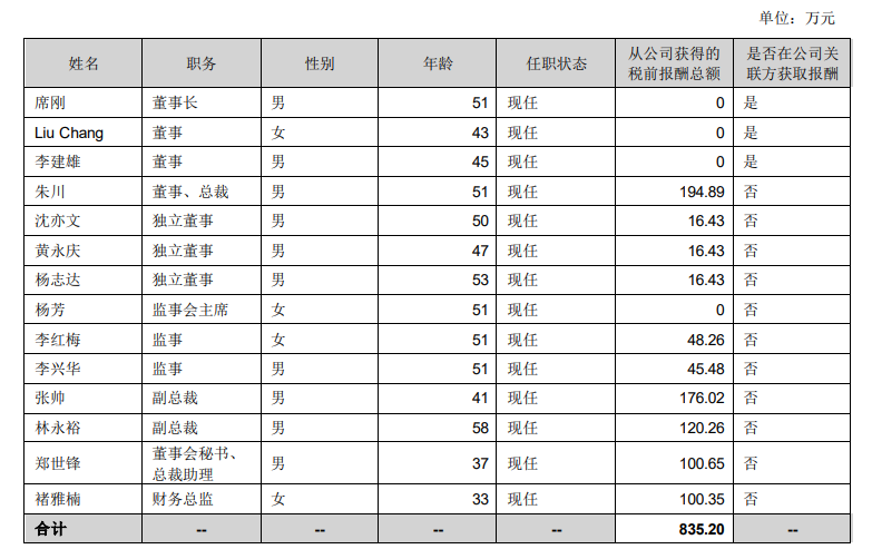 其中,董事、总裁朱川2023年的税前报酬为195.05万元,与2022年的194.89万元相比有所微增;副总裁张帅的税前报酬为180.04万元,比2022年的176.02万元增加约4万元。