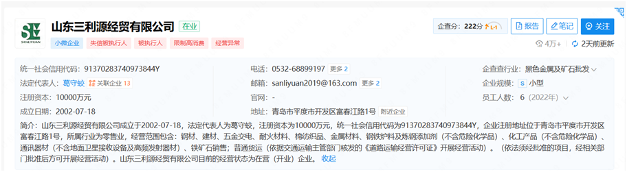 在资本市场的浪潮中,三利源经贸曾是个极为活跃的参与者,在多只股票中留下了身影。它一度持有亚钾国际(000893.SZ)、山东钢铁(600022.SH)、渝三峡A(000565.SZ)等多家上市公司的股份,从这些投资中斩获了数千万元的收益。除涉足上述企业,三利源经贸在银行业也有所布局,不仅是青岛银行的股东,还持有山东另一家城商行齐鲁银行(601665.SH)的股份,巅峰时期进入青岛百强企业行列。