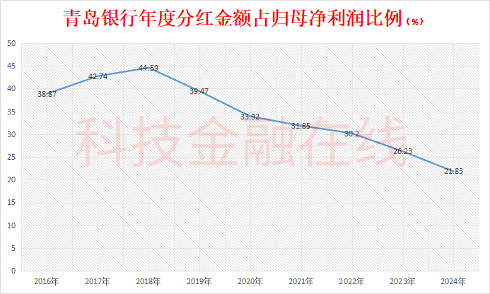 2024年,青岛银行拿出了9.31亿进行分红,占净利润的比例为21.83%。