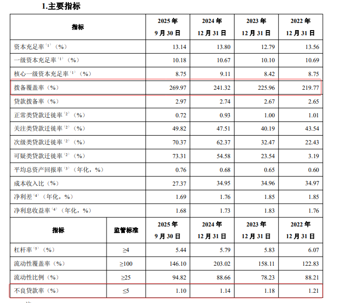 到三季度末,青岛银行不良贷款率1.1%,比2024年底下降了0.04个百分点。拨备覆盖率为269.97%,比2024年底增加了28.65个百分点。