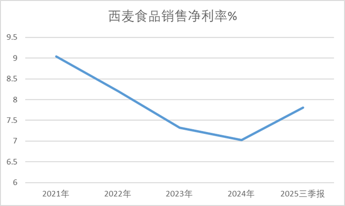 西麦食品的主营业务表面上保持着增长态势。2025年前三季度,公司营收16.96亿元,同比增长18.34%。从历史数据看,2021-2024年间,公司营收增幅分别为12.6%、15.06%、18.89%、20.16%,呈现稳步上升趋势。然而,归母净利润的增长额却大幅落后于营收增长。公司前三季度净利润1.32亿元,同比增长21.9%,但近年走势来看,始终维持在1亿元左右的水平。