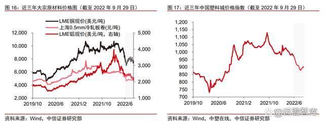 但周期总会回归,自今年 6 月份以来,大宗原材料价格在美国强加息预期下受压制,铜/铝/钢价 8 月的日平均价格分别同比-6.9%/-14.9%/-29.7%,(铜/铝价采用 LME 现价,钢价采用上海冷轧板钢 0.5mm 现价),边际有所改善,或已步入下行周期。