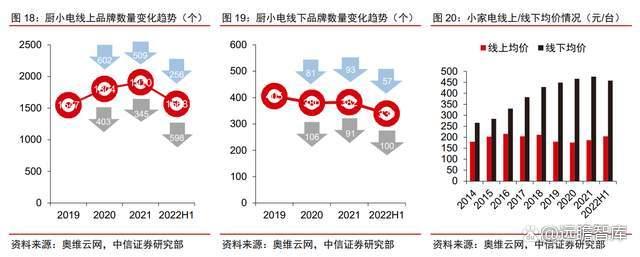 根据奥维云网,22H1 线上厨房小家电市场品牌数为 1568 个,较 2021 年下降 342 个(其中新进入品牌 256 个,退出品牌 598 个),行业盈利能力承压下,抗压能力较弱的尾部品牌出清趋势明显。