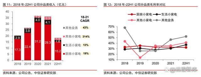 而近两年个护/母婴小家电毛利率均高于厨房/生活小家电毛利率(2020-2021 年平均值为 35.5%),未来有望为公司贡献更多业绩增量,公司成长第二曲线可期。