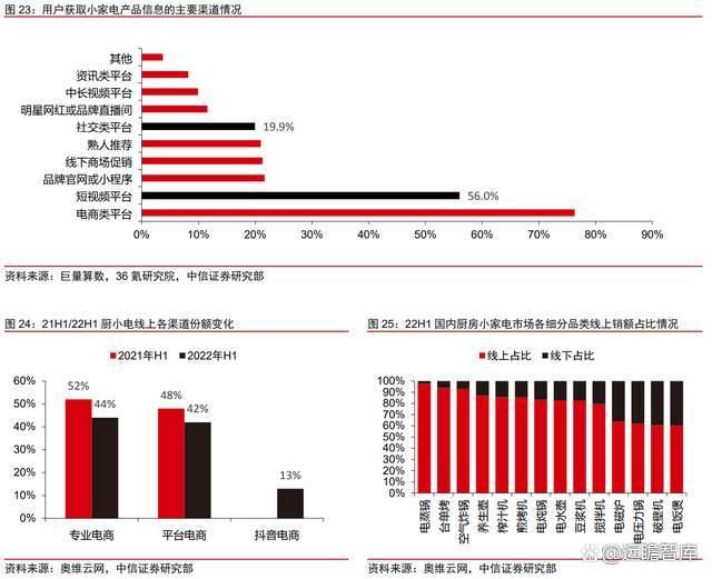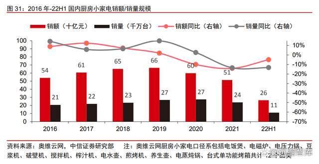 2.国内方面:根据奥维云网,22H1 国内小家电销售中,线上渠道销额/销量占比分别为 73%/86%。