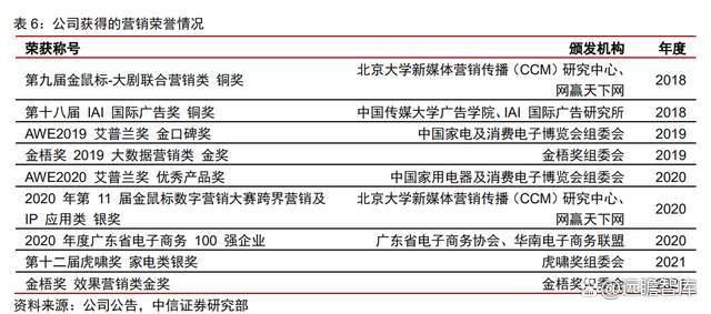 5.年轻人喜欢的小家电(2022 年至今):以创新多元、精致时尚、小巧好用的产品,为年轻人带去惊喜有趣的生活体验。公司品牌战略变化与时代底色高度相关,有利于其产品创新设计和营销推广更贴近目标消费群体的需求,占领消费者心智。