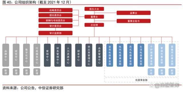 2021 年 12 月,公司发布关于组织结构调整的公告,以聚焦于管理效率的提升与新品类的拓展,适配小家电行业的快速变化。