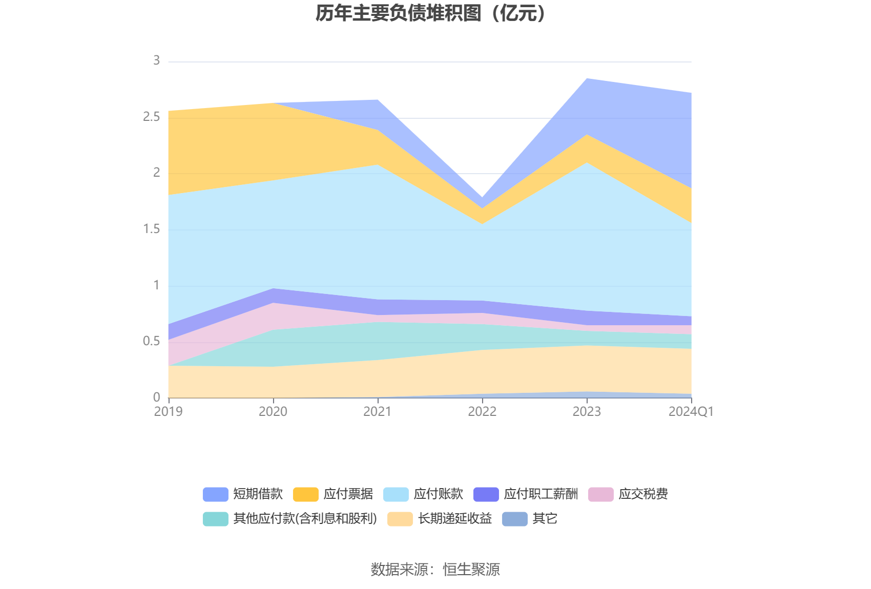 负债重大变化方面,截至2024年一季度末,公司应付账款较上年末减少37.32%,占公司总资产比重下降2.35个百分点;短期借款较上年末增加70.84%,占公司总资产比重上升1.66个百分点;应付票据较上年末增加21.80%,占公司总资产比重上升0.26个百分点;应付职工薪酬较上年末减少38.69%,占公司总资产比重下降0.24个百分点。