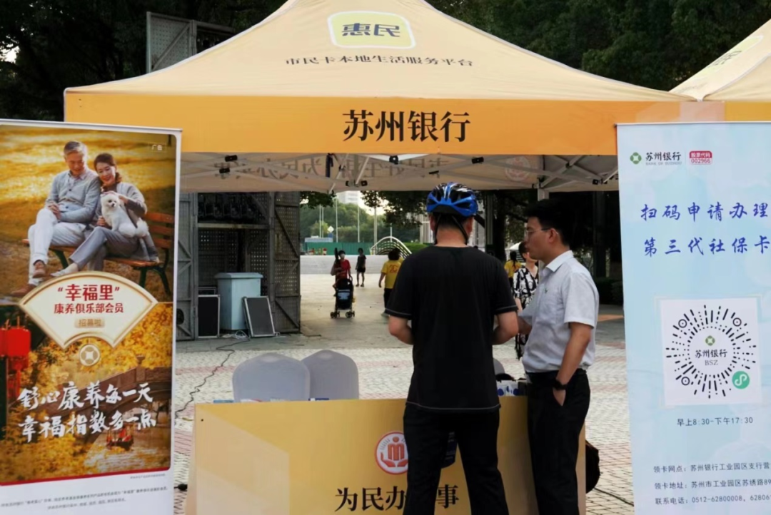 活动现场,苏州银行还组织了反诈防非面对面宣传、惠民金融知识普及、三代社保卡换发等便民服务。