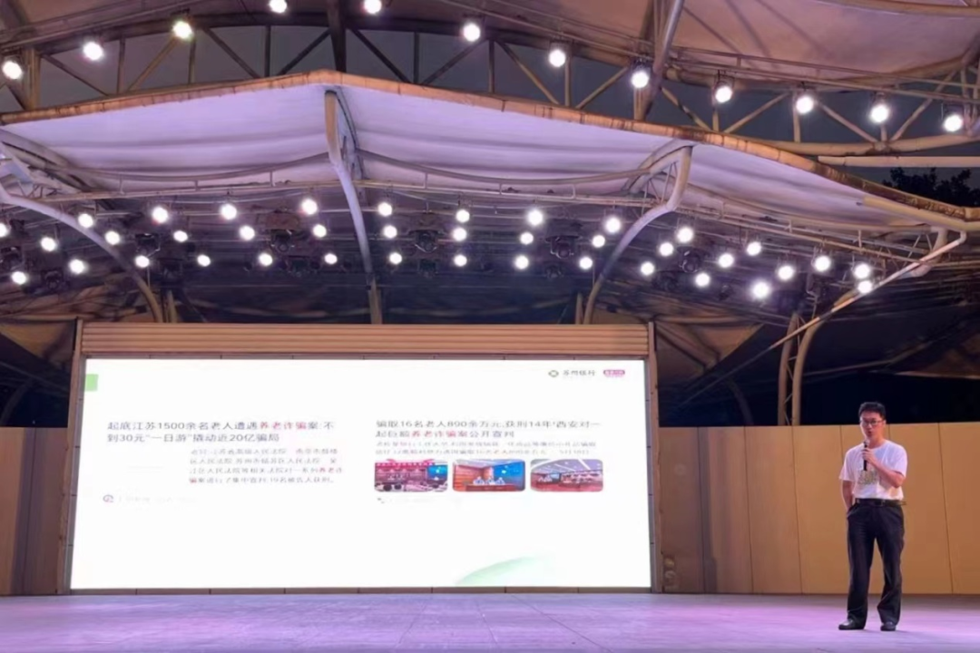 6月21日晚,“为民办实事守护老人钱袋子”2022年度反诈防非社区行暨苏州银行“幸福里”康养俱乐部金融知识讲座主题活动在园区中央公园举行,此次活动由苏州市民政局、苏州市地方金融监督管理局主办,金鸡湖街道、园区社会事业局协办,苏州银行、市民卡公司承办,旨在为广大老年朋友提供反诈防非知识普及,共同筑起反诈防护网。