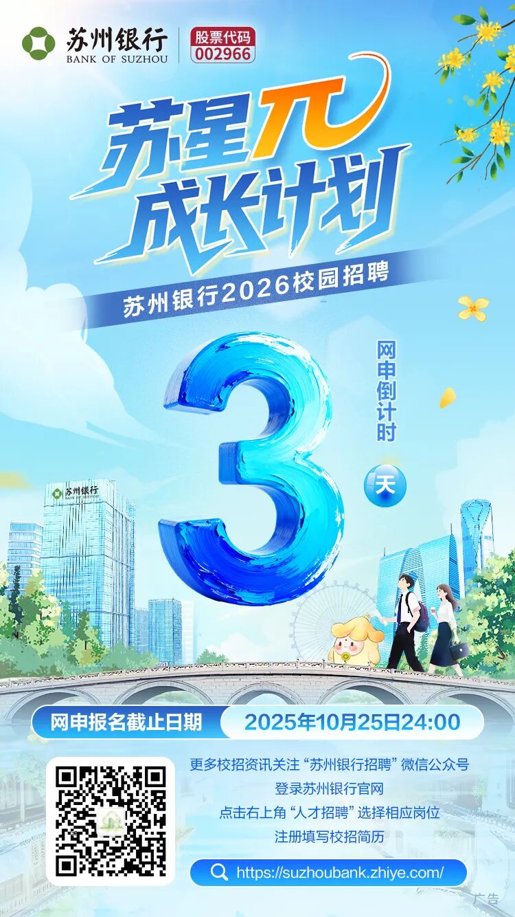 网申倒计时 | 苏州银行2026秋招网申仅剩3天!