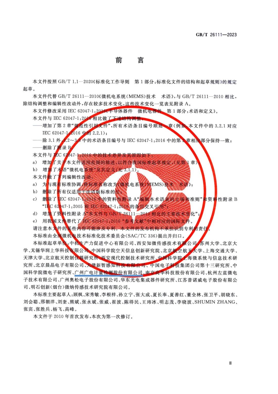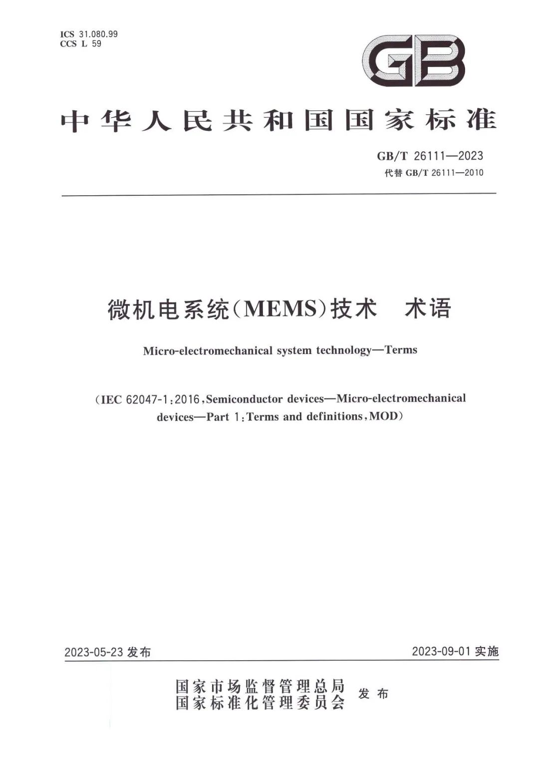 GB/T 26111-2023《微机电系统(MEMS)技术术语》
