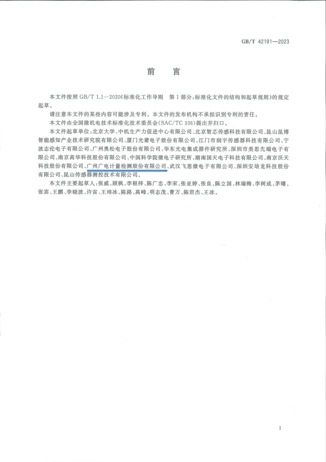 9月1日起,由国家市场监督管理总局和国家标准化管理委员会发布,广州无线电集团成员企业广电计量(SZ 002967)参编的GB/T 26111-2023《微机电系统(MEMS)技术术语》、GB/T 42191-2023《MEMS压阻式压力敏感器件性能试验方法》、GB/T 42782-2023《数字化协同工程协同设计要求》3项国家标准正式实施。