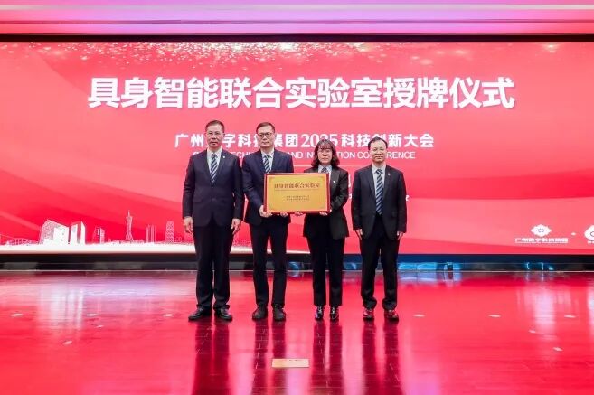 大会还举行了具身智能联合实验室授牌仪式。该实验室由 广州人工智能融合赋能中心 (AIEC)负责统筹, 广电计量 全面负责建设运营,旨在聚焦技术验证、场景落地、标准制定、测评体系构建与人才培养等核心任务,着力构建“共性能力支撑+垂直场景突破”的运营模式,持续拓展人工智能赋能边界,推动人工智能技术在具身智能多元场景中落地生根,共同擘画高质量发展新蓝图。