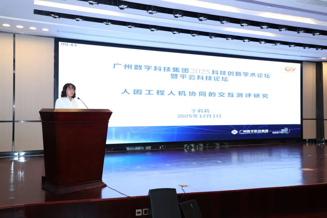 在下午举办的广数科2025年科技创新学术论坛暨平云科技论坛上, 广电计量 副总经理于莉莉作《人因工程人机协同的交互测评研究》主旨演讲,围绕人因工程在智能时代的核心价值展开,系统阐述了人机协同场景下交互测评的技术要点与实践路径,提出构建"全场景覆盖、全流程管控、全要素保障"的人机交互测评体系,为行业提供了科学、高效的测评解决方案。