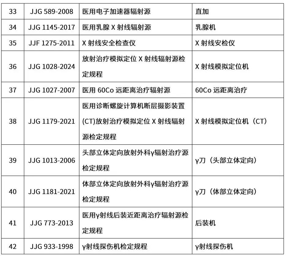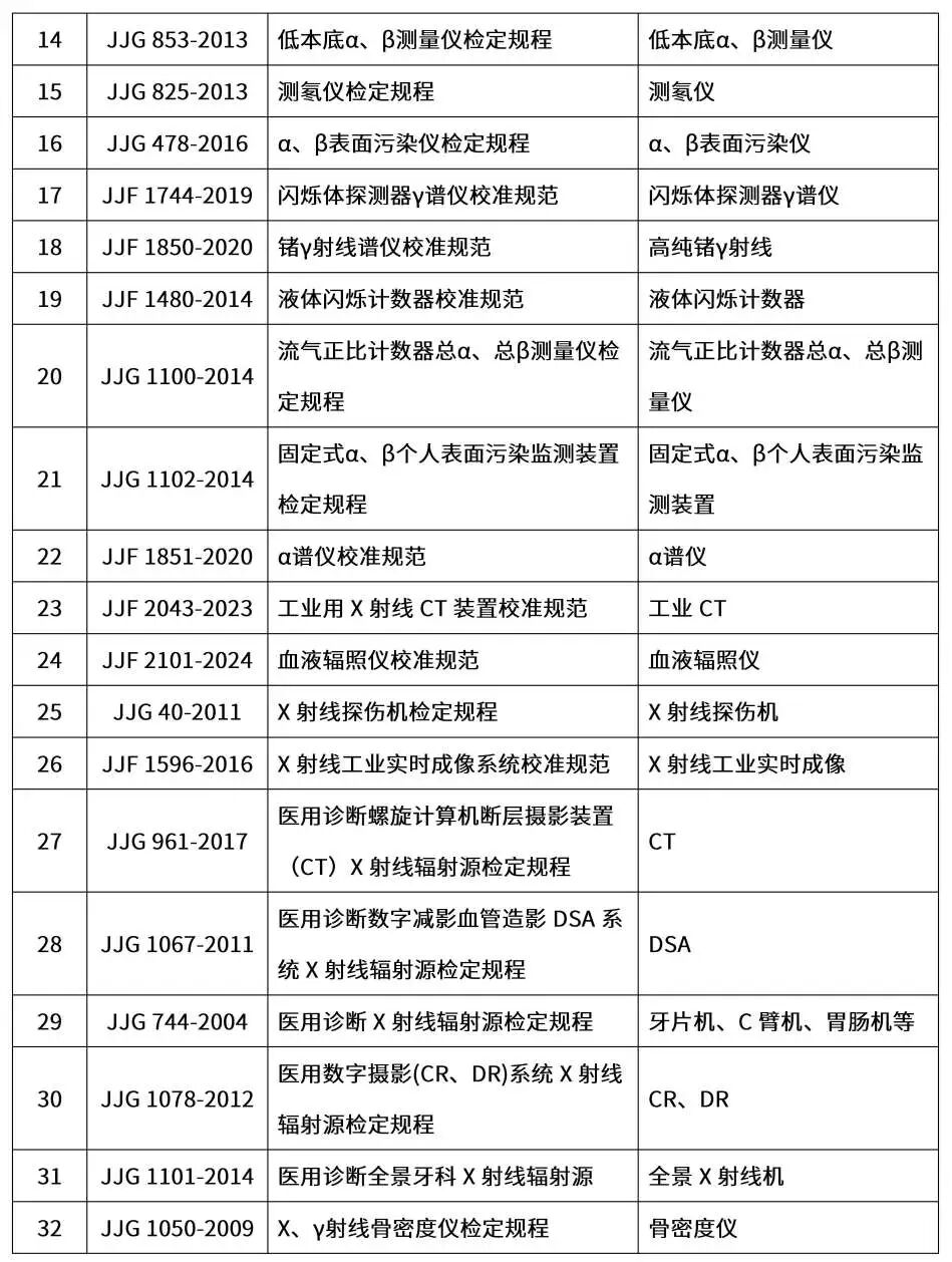电离辐射校准能力一览表