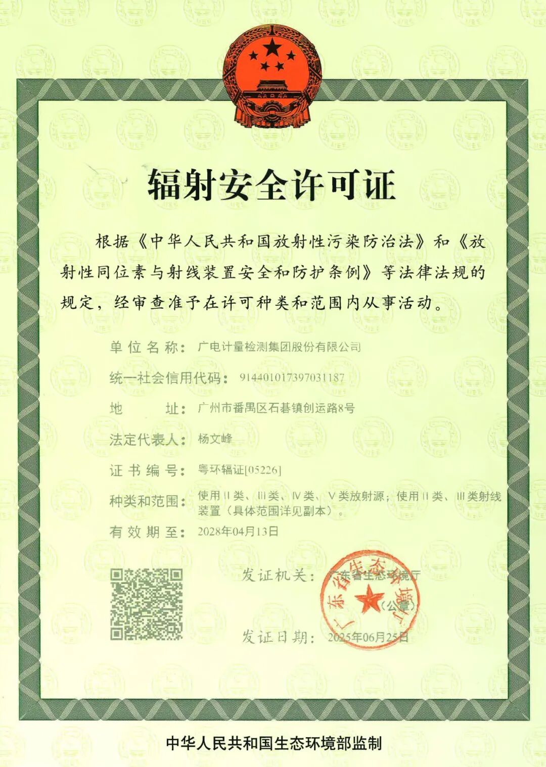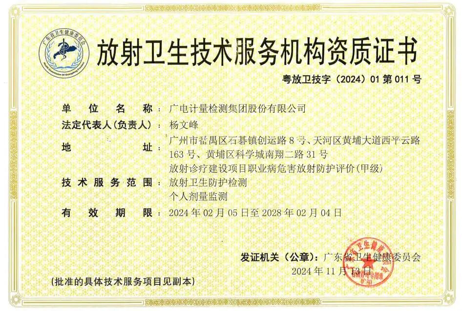 在电离辐射与放射卫生领域,广电计量已具备CNAS、CMA、甲级放射卫生技术服务机构、辐射安全许可等资质,构建起覆盖活度、剂量、中子等专业电离辐射仪器校准,以及放射卫生检测、防护评价与产品检测的全链条技术服务体系。其中,CNAS认可检测能力257项,CMA认可检测能力25项。