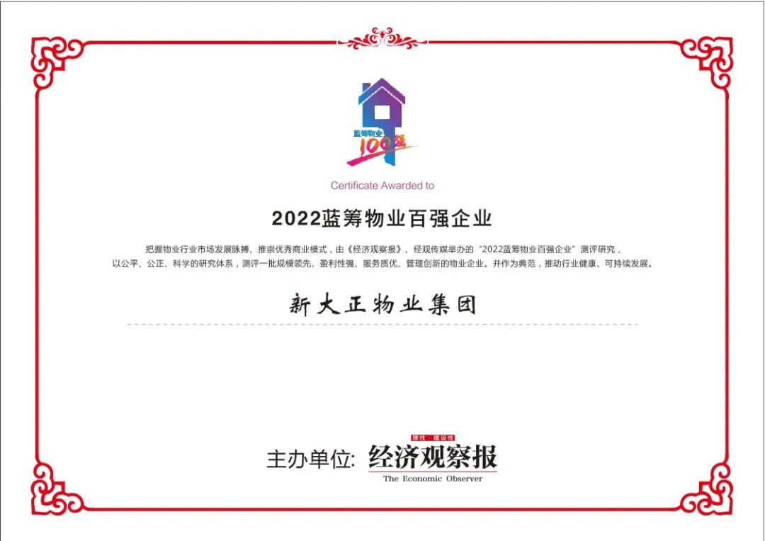 9月25日,由《经济观察报》主办的2022蓝筹物业百强峰会在广州成功举行,峰会聚焦物业行业发展,探讨如何以城市和社区为依托,以运营为平台,以服务为内容,物业服务通过科技和创新构建新价值的新走向。会上发布2022蓝筹物业百强数据。