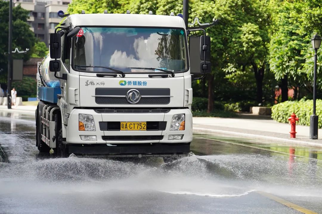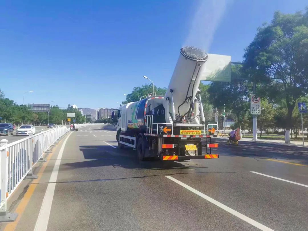 张亮亮说,“在夏日高温天气,为缓解路面高温,我们增加湿扫车、雾炮车等环卫车辆作业频次,每天洒水降温4次,针对重点区域与重要路段,采取全天候洒水抑尘降温作业。遇到扬沙天气,立即启动扬沙天气应急预案,加大早、中、晚、夜间道路机扫、洒水、抑尘作业力度,净化空气。”