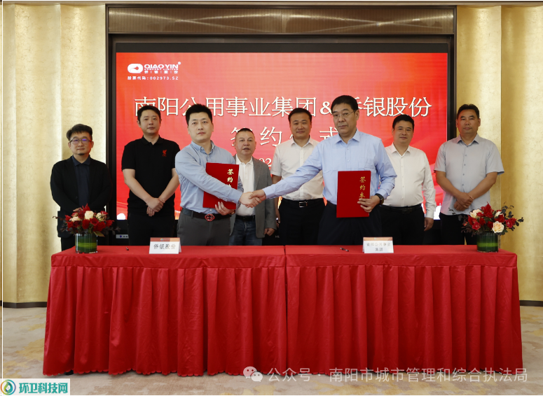 环卫科技网从南阳市城市管理和综合执法局官方微信获悉,3月29日,南阳公用事业投资发展集团有限公司(以下简称“南阳公用事业集团”)与侨银城市管理股份有限公司签署战略合作框架协议,建立全面战略合作伙伴关系。南阳市人民政府办公室副主任陈经波,科长郭蒲,南阳公用事业集团总经理李伟,侨银城市管理股份有限公司副总裁汪辰达共同见证签约仪式。