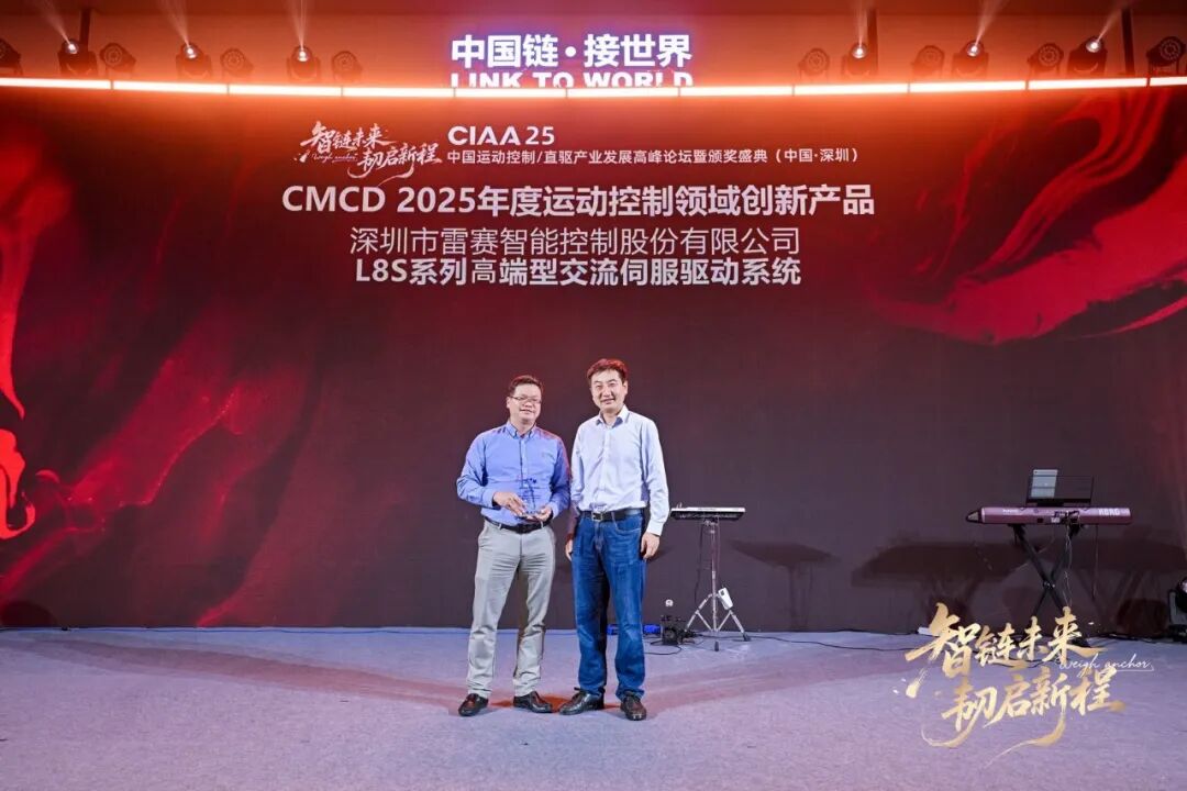 12月18-19日,CIAA 2025运动控制/直驱产业发展高峰论坛暨颁奖盛典在深圳举行。在本次年度盛典的颁奖典礼上, 雷赛智能 凭借其在运动控制领域的持续深耕与卓越表现,荣膺“CMCD 2025年度运动控制领域最具影响力企业品牌”大奖。同时,旗下L8S系列高端型交流伺服驱动系统产品也荣获“CMCD 2025运动控制领域创新产品”奖项,彰显了雷赛在技术创新与产品落地方面的双重实力。