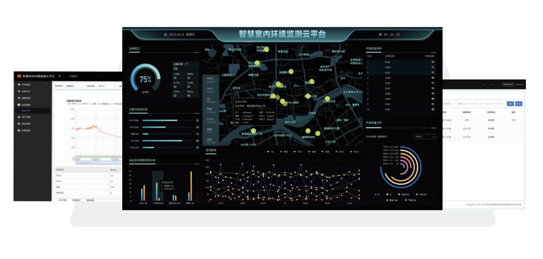 华盛昌智慧室内环境监测平台,具有不间断监测、连续记录、数据存储、显示及报警功能,可实时采集多个环境监测站点的温度、湿度、露点温度、湿球温度等环境参数,实现对室内环境快速实时监测。所有数据支持实时采集、实时展示,也可对历史数据进行存档,方便后期审阅。