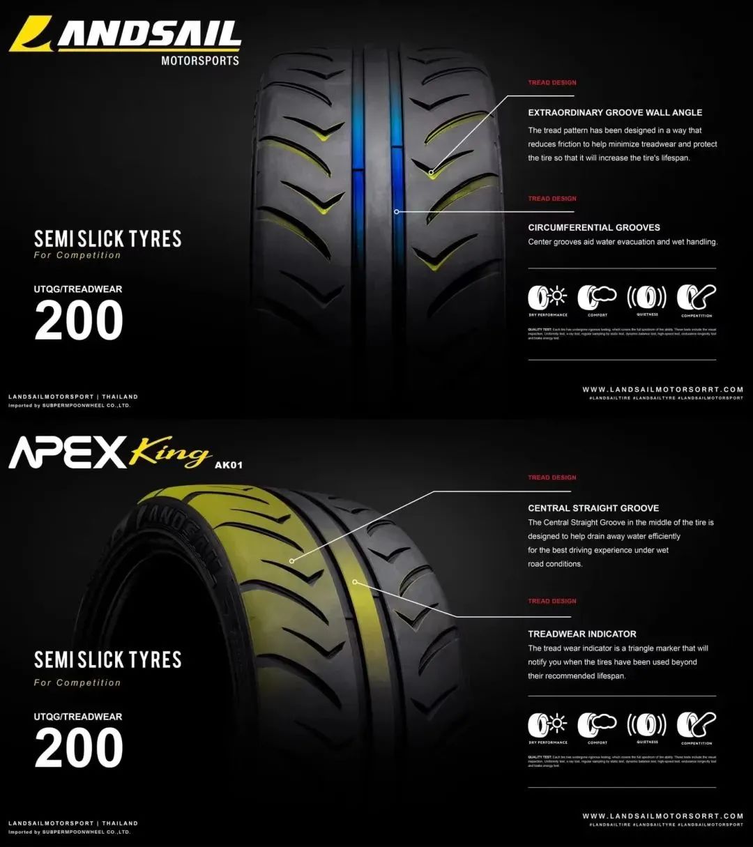 据了解,路航Apexking AK01胎面采用了半热熔配方设计同时优化轮廓和支撑结构,提供了高速时的极限抓地力。混纺胎体与胎侧的芳纶补强设计,保证了在激烈驾驶时轮胎仍然能够提供良好的响应性。花纹与宽阔的中央沟槽让Apexking AK01即使是赛道雨战也能得心应手。