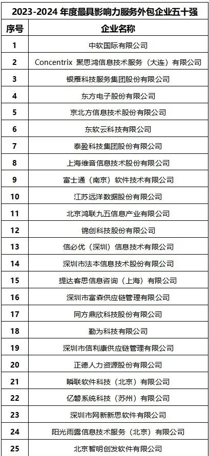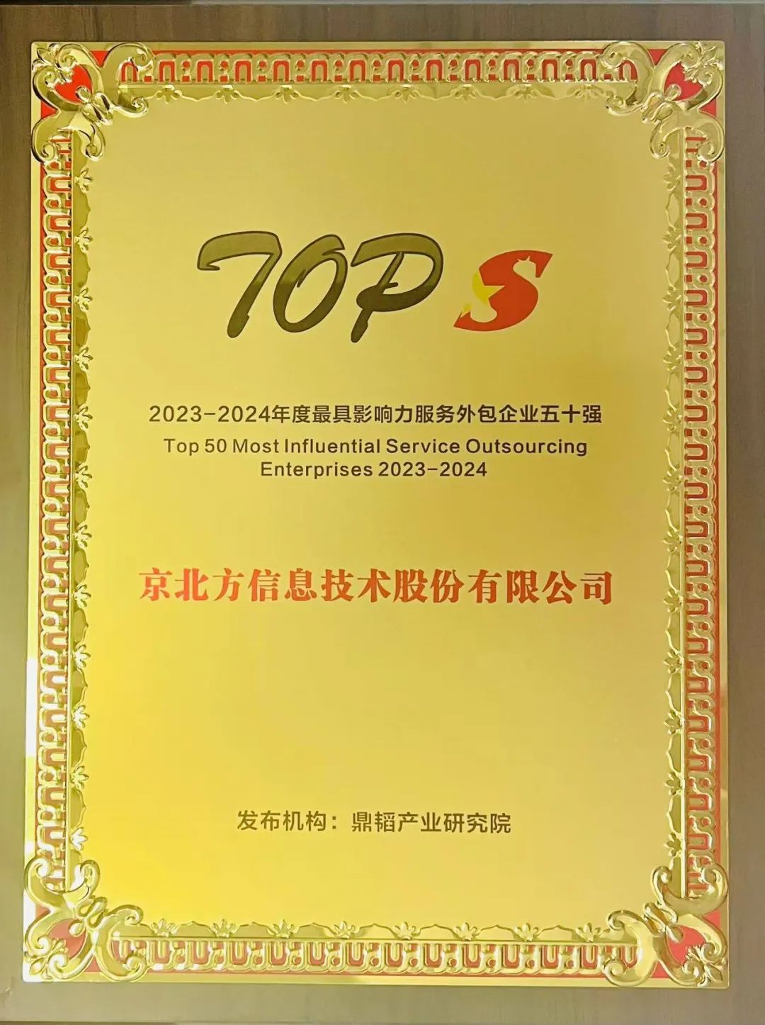 近日,由鼎韬产业研究院发起的“2023-2024年度最具影响力服务外包企业五十强”研究报告正式揭晓。京北方凭借其在信息技术服务领域的综合实力强势登榜,跻身前五。