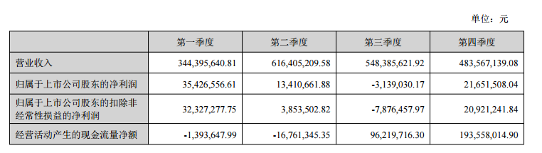 其中,2022年第四季度,公司单季度主营收入4.84亿元,同比下降40.5%;单季度归母净利润2165.15万元,同比上升347.44%。
