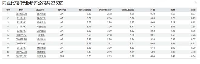 ESG表现方面,据万得评分,甘源食品获评“BBB”级,位于同行业中上游水平。