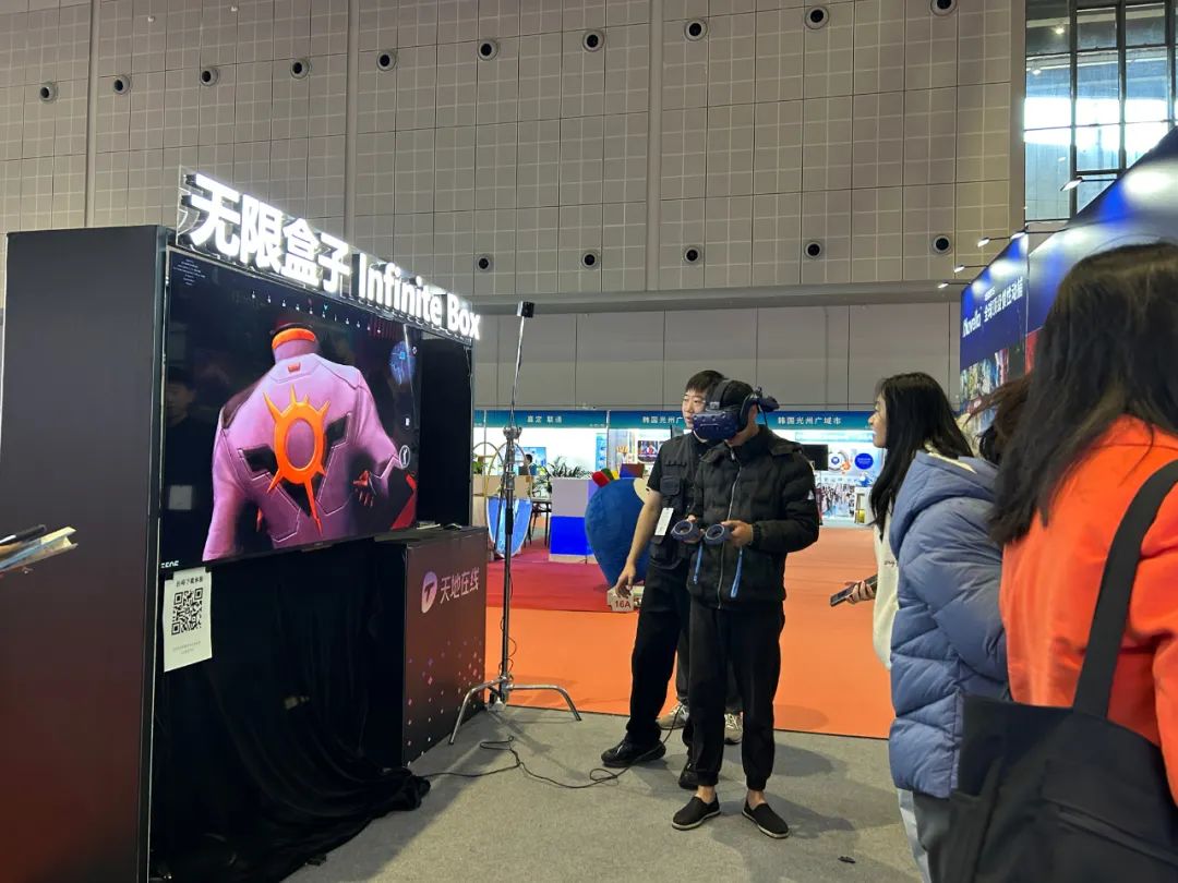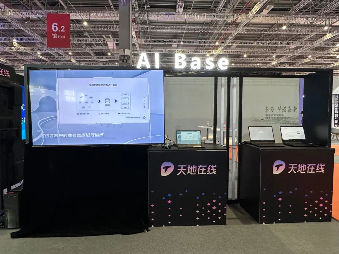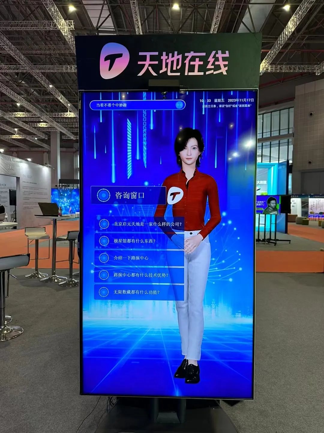 在长三角文博会上,天地在线展示了多个重点项目,包括AIbase智能AI、VR演示无限盒子、星河AI数字人(2.5D)、AI数字人(一体机)互动、XR技术、以及动捕技术(实时动捕数字人)等。