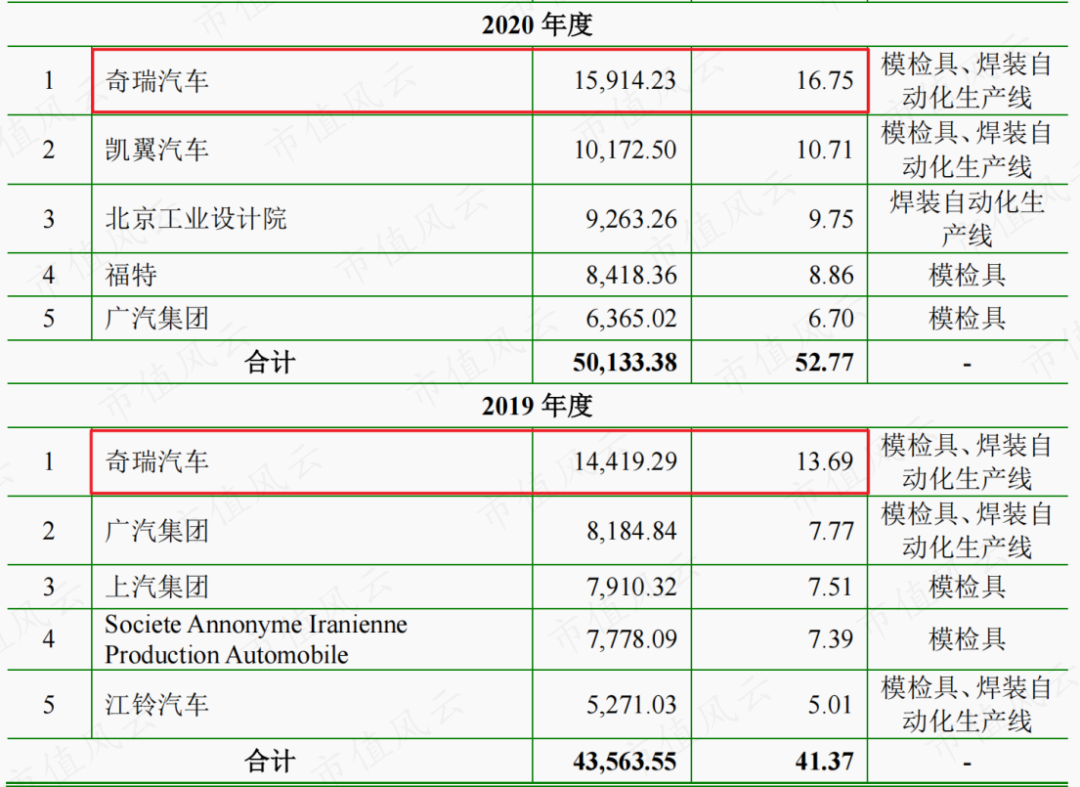 另外,奇瑞汽车还是公司的核心客户。据披露,2017年至2020年,奇瑞汽车都是公司的第一大客户。