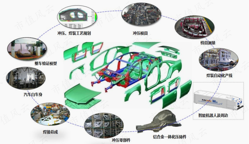 2022年公司开始介入汽车轻量化零部件业务,产品包括高强度板及铝合金冲焊零部件、铝合金精密铸造零部件等。目前已形成以汽车白车身相关配套装备为主的完整产品线。