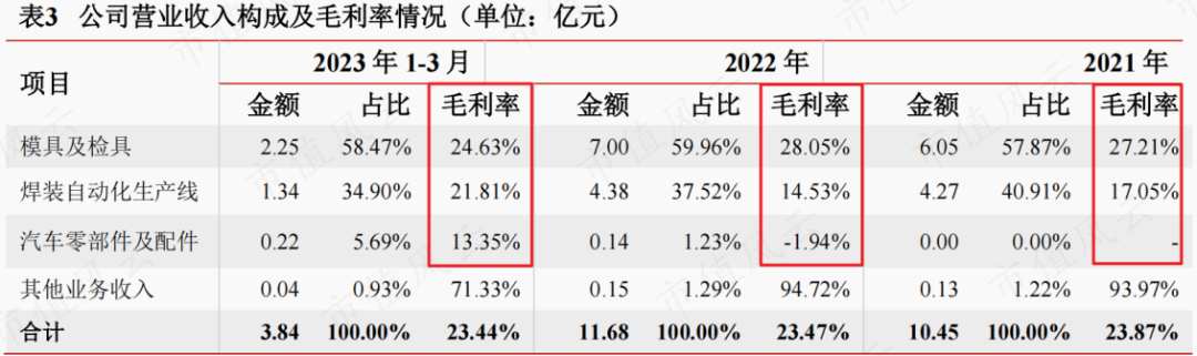 分产品来看,模检具业务毛利率整体相对较高,2023年一季度汽车零部件业务毛利率实现转正。