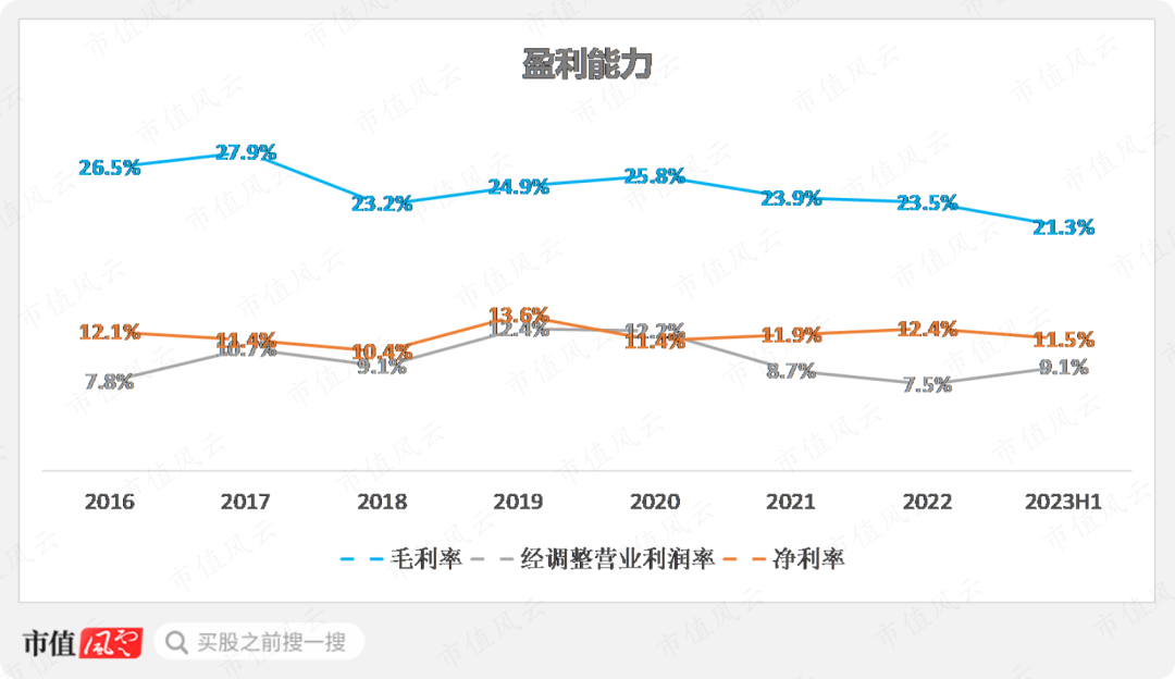 2023年上半年,公司毛利率为21.3%,经调整营业利润率为9.1%。