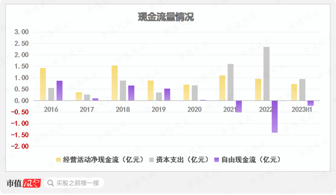 历史上经营活动现金流净额均为正,具备自我造血能力,近两年资本支出金额较大,导致自由现金流出现大幅流出。