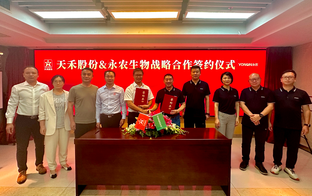 10月19日,广东天禾农资股份有限公司(下称天禾股份)和永农生物科学有限公司(下称永农生物)在天禾股份本部大楼签订了战略合作协议,这是双方继“精展”经销协议之后又一具有里程碑意义的合作。