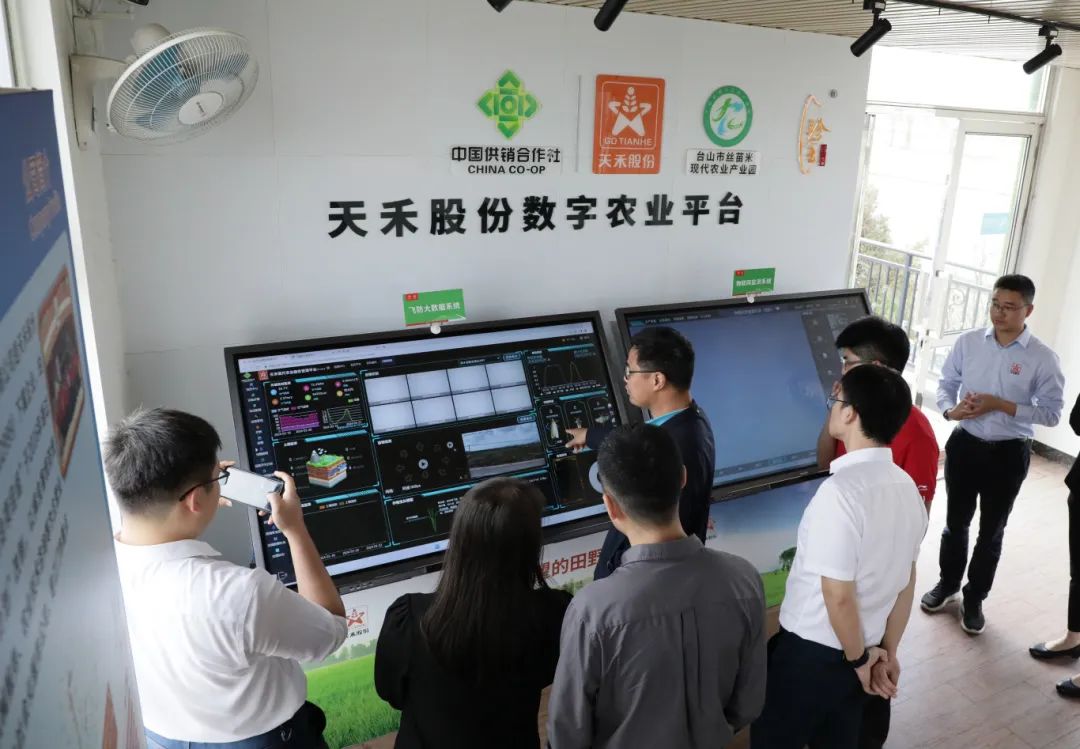 侯晓峰一行参观了位于台山市都斛镇的供销天禾智慧农场,现场观摩了农业社会化服务作业,姚伟英对智慧农场建设和数字化应用等情况作了详细介绍。台山智慧农场起建于2023年,是集成育秧工厂、智能灌溉、农业物联网智能监测、无人农机等功能,通过数字化赋能实现水稻“耕种管收”全程机械化、精准化、无人化运营作业的示范农场。农场计划于今年下半年建成投入使用,未来将围绕提升水稻生产智能化程度,应对农村劳动力老龄化及短缺问题和提升粮食全程社会化服务质效,打造高价值、品控稳定的大米两方面重点发力,探索推动农业农村现代化,增加农民种粮综合收益。
