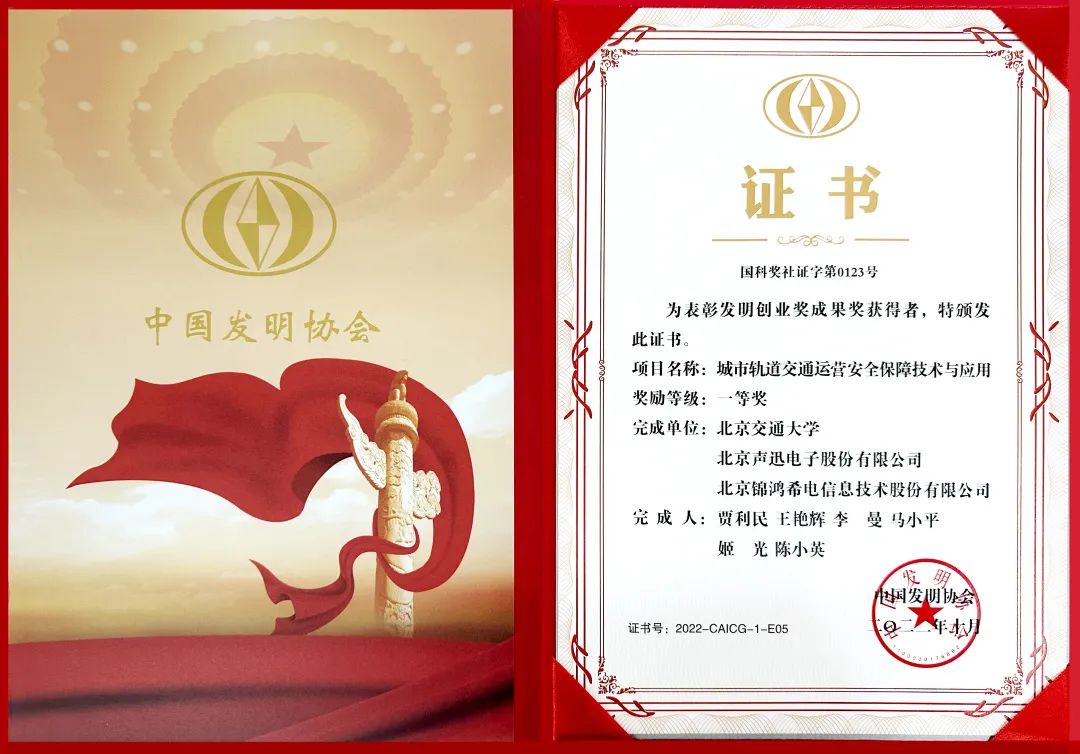 近日,在中国发明协会举办的“2022年度第三届发明创业奖成果奖”全国评比中,声迅股份参与完成的《城市轨道交通运营安全保障技术与应用》科研成果荣获中国发明协会发明创业奖成果奖一等奖,标志着公司在发明创业奖成果奖上取得历史性突破。