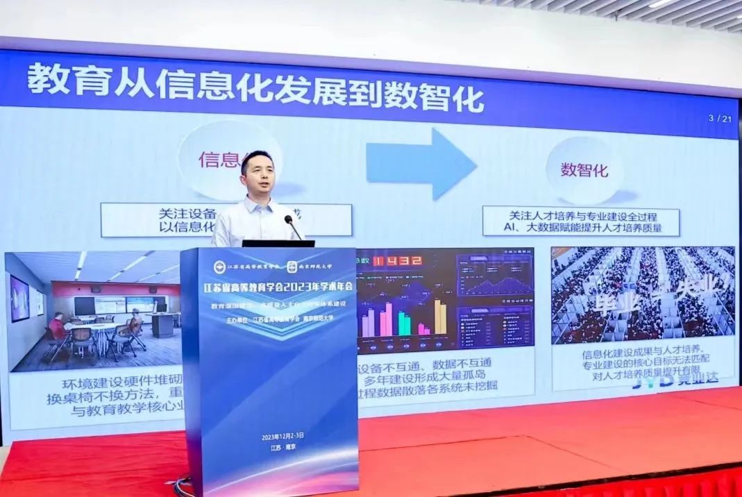 竞业达受邀出席高等教育高质量发展论坛,教育部学校规划建设发展中心专家、副总裁曹伟发表报告,以“产教融合引领,数智化赋能人才培养全过程”为主题,从科技赋能教育高质量发展的角度,结合竞业达的实践经验,分享了基于人工智能、大数据助力高校人才培养全过程、构建未来学习中心的思考和探索,对于高校在课堂教学、实验教学、专业建设、质量保障等关键环节如何实现数字化转型,提出了竞业达的解决方案,同时也表达了竞业达作为上市公司,与高校战略一致、协同发展、共同推进教育数字化转型、高质量人才培养的发展愿景。