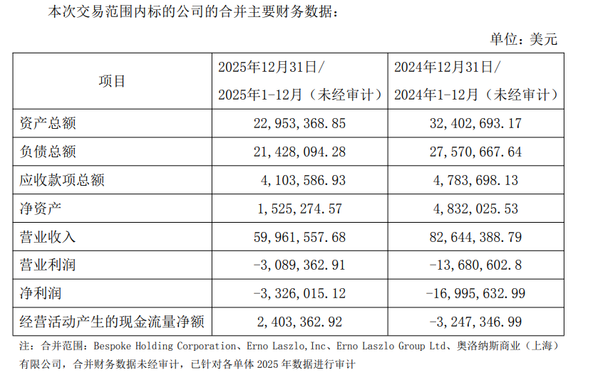 根据若羽臣公告中公布的财务数据,2024年,标的公司营收8264万美元,营业亏损1368万美元,净亏损1670万美元;2025年,营收降至5996万美元,同比下降约27%,净亏损则大幅收窄至333万美元,经营现金流已经转正,其内部运营效率正在改善。(财务数据详见文末)