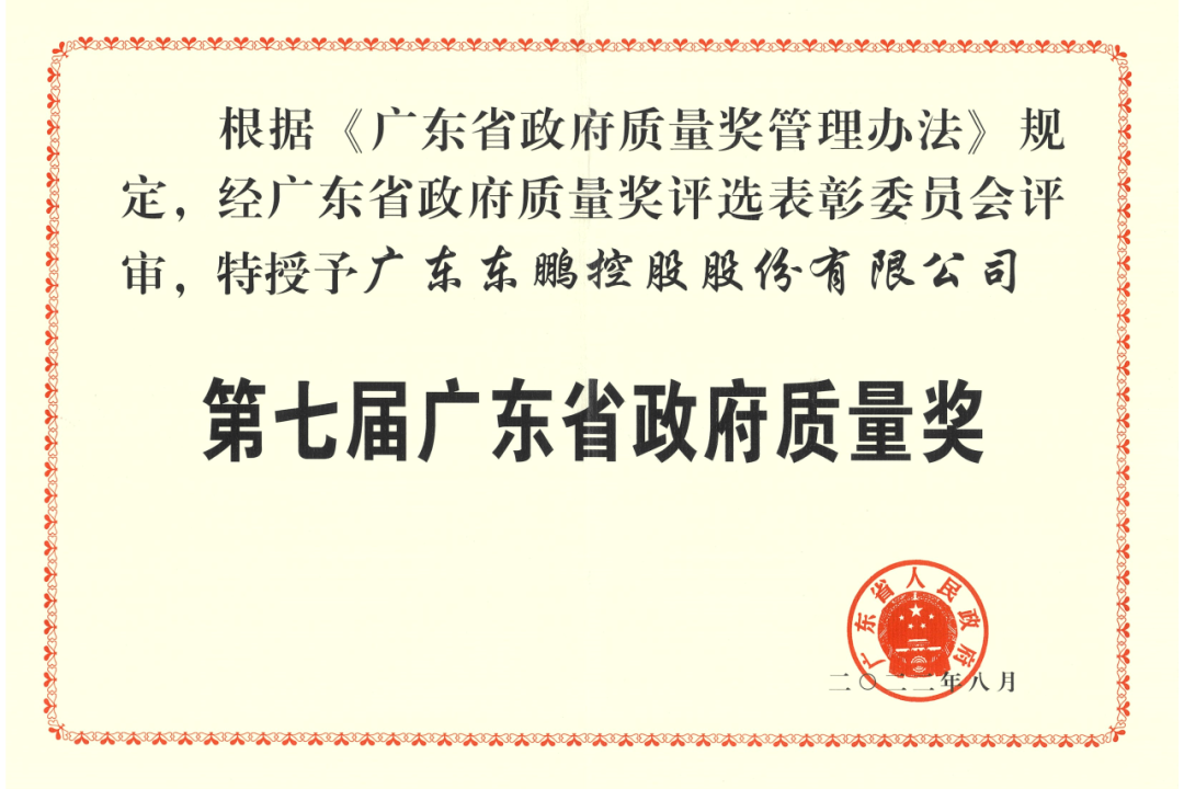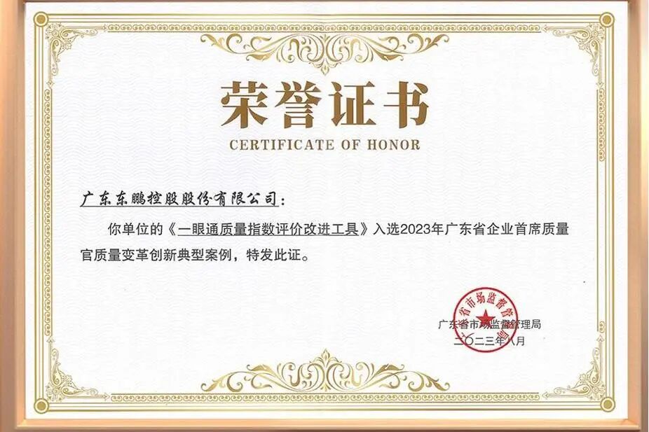 东鹏控股在持续推动质量提升的过程中,逐步形成了“质量为本、精益求精”的企业质量文化。这种文化不仅深入企业运营的每一环节,也为东鹏赢得了广泛的社会认可与荣誉:公司先后荣获广东省政府质量奖、清远市政府质量奖,并自主开发出独具特色的质量管理评价工具——“一眼通质量指数评价改进工具”,并荣获广东省市场监督管理局颁发的“质量变革创新典型案例”奖项。