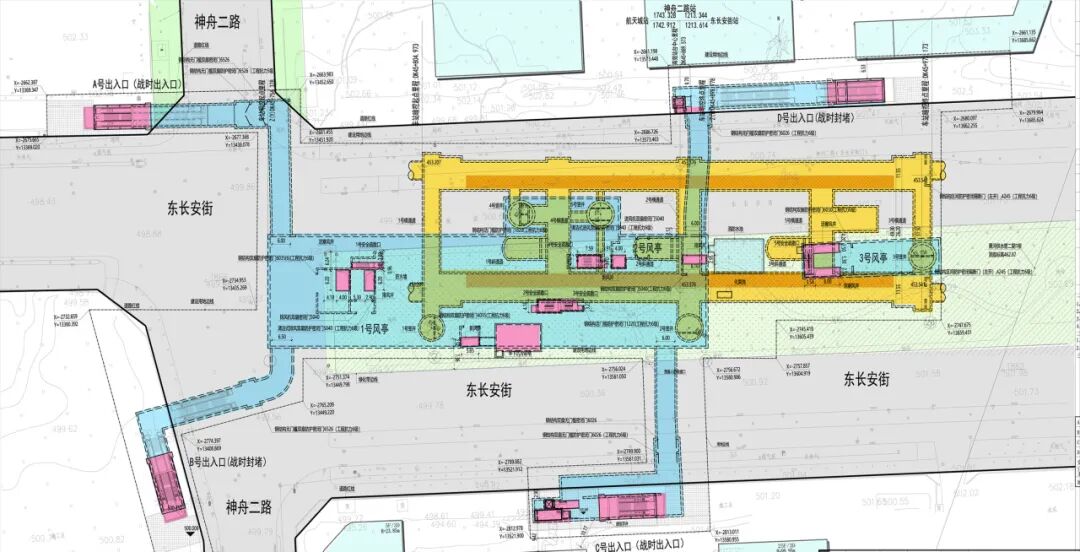 为满足神舟二路附近居民集聚区出行需要,项目统筹城市规划、交通需求、工程规模及风险等因素,成功攻克了“大高差、超埋深”特殊黄土层地段增设皇子坡站的技术难题。