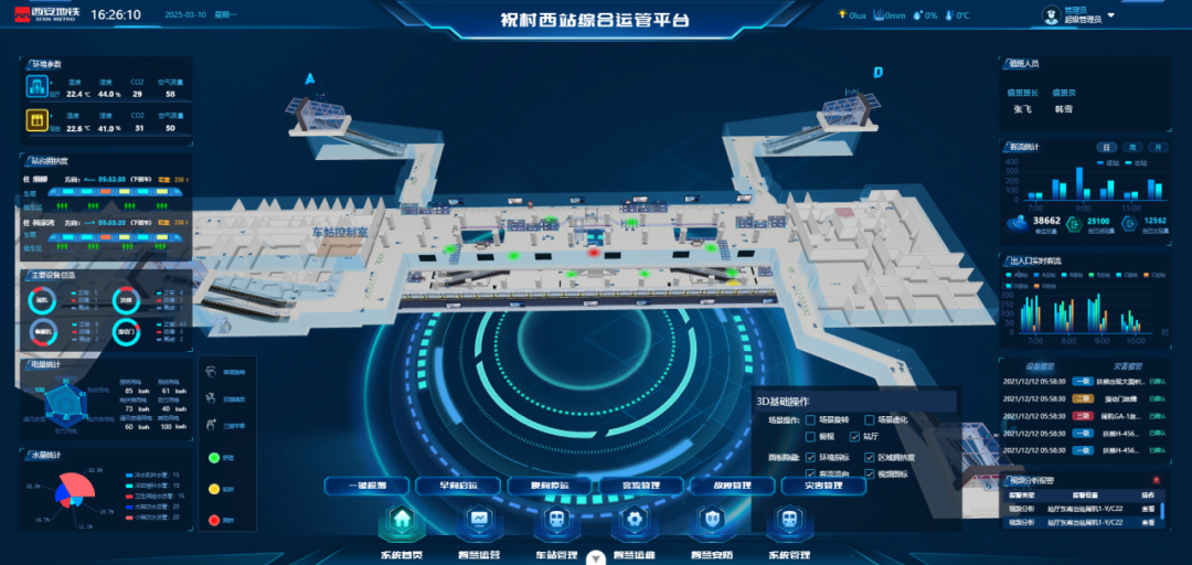 十五号线一期工程全线在综合监控系统的基础上搭建智慧车站综合运管平台(ISCS-SOM),可实现场景联动、可视化综合看板、无线单兵、车站设备管家、客流实时监测和分析、智能车站管控等功能,全面提升车站在客运管理、设备运管、乘客服务、人员管理四个业务板块的效能。