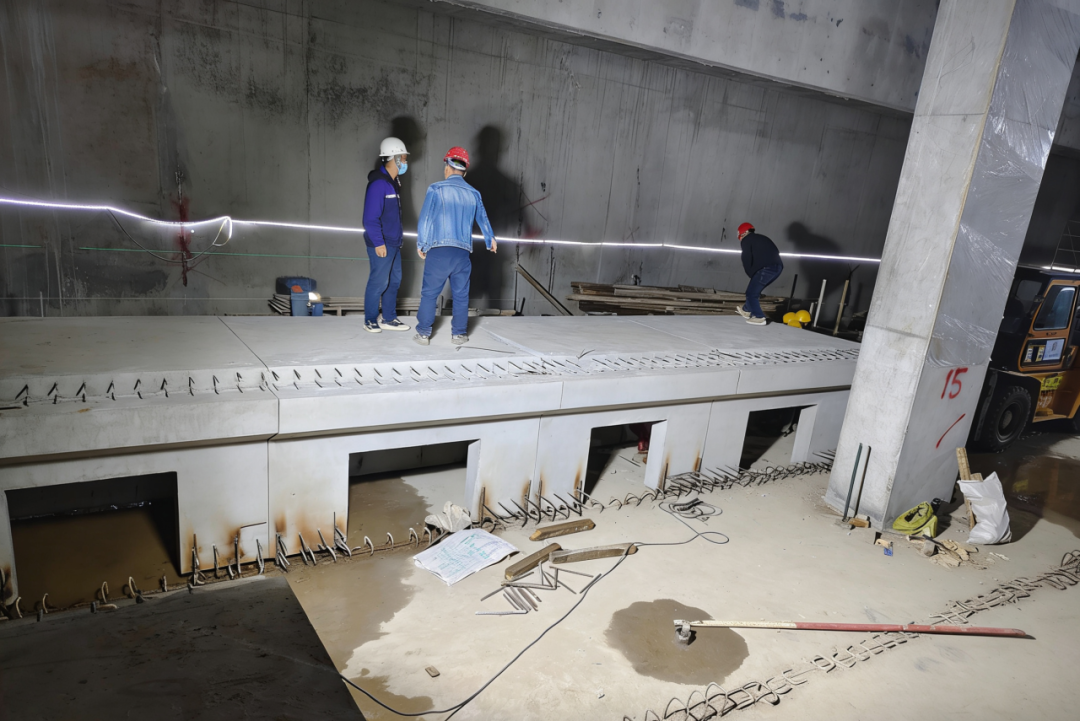 坚持科技创新,开展了《西安地铁车站装配式关键技术应用研究》,在十五号线多座车站推广应用装配式站台板和出入口技术,创新门型预制自稳结构,解决了传统现浇站台板狭小空间支模拆模难,浇筑质量不稳定,施工环境差的难题,实现了绿色工业化建造。同时提出了适用于抗震设防烈度8度区的地铁车站轻量化装配整体式方案,拟在后续线路中逐步推广应用,为地铁车站建设提供了更加高效、环保的解决方案。