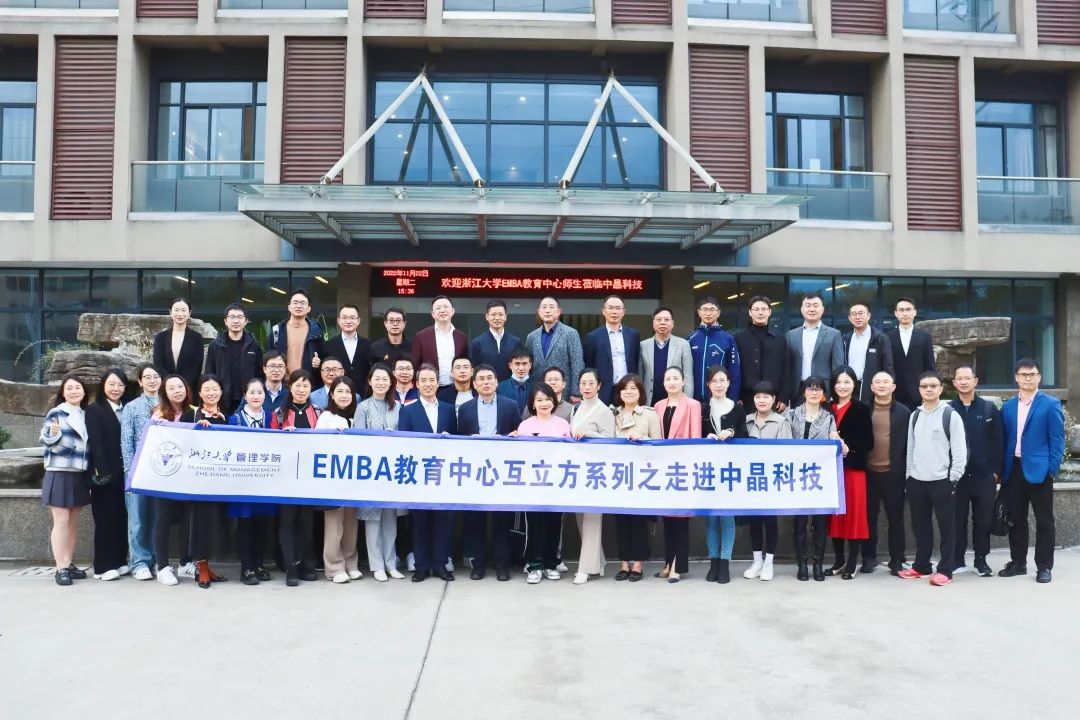 2022年11月22日,浙江大学管理学院邬爱其教授、EMBA教育中心副主任王剑老师,EMBA教育中心40余名同学、企业家朋友莅临中晶,公司董事长徐一俊先生,副总经理、董事会秘书李志萍女士欢迎并接待浙大校友一行。
