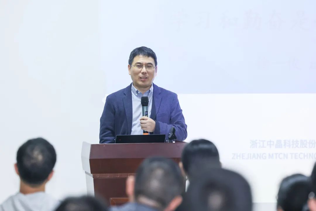 邬爱其教授进行本次活动的总结,邬教授说,中晶科技是一家典型高新技术制造企业,技术沉淀深厚,同时也是一家有愿景和使命推动的公司,在徐董身上我们看到了坚守初心的力量,这是广大中小企业寻求高质量发展的榜样力量。企业要走专精特新发展之路,首先要坚持长期目标导向,以愿景使命驱动,深度聚焦主业,专注专精发展,深耕某一细分领域。而企业要发展,技术是关键,必须坚持创新驱动发展,增加研发投入,提升企业核心竞争力。邬教授说,徐董几十年如一日孜孜不倦地学习,作为浙江大学企业家学者项目第一人顺利通过博士论文答辩,让人深感敬佩。实体经济是一国经济的立身之本、财富之源,是构筑未来发展战略优势的重要支撑。邬教授殷切希望以后能够吸引更多优秀大学生走进制造业,把更多的力量导向中国的实体经济,推动我国各项制造业高质量发展。